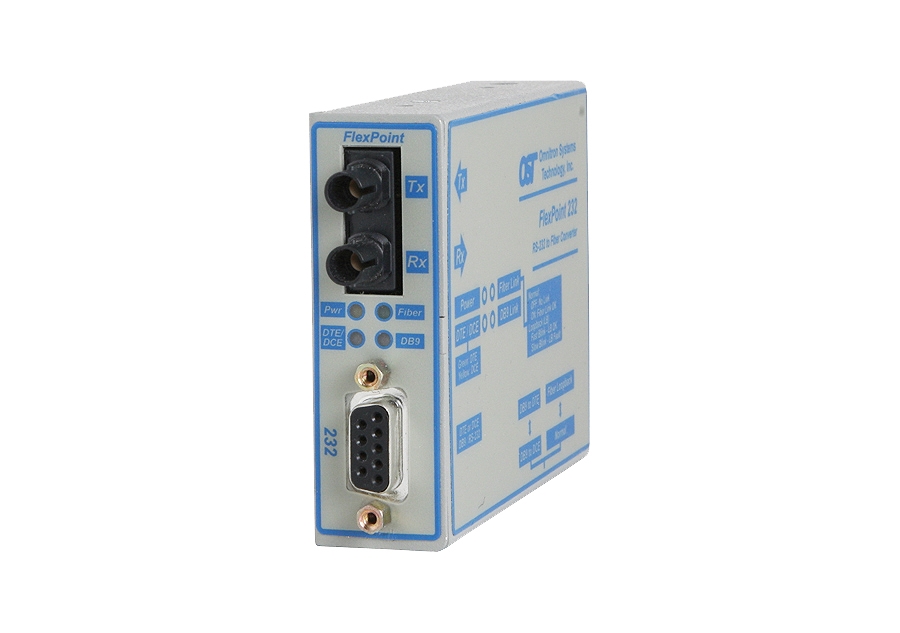 The FlexPoint 232 is a RS-232 to fiber media converter that provides reliable and cost-effective fiber extension for serial connections.