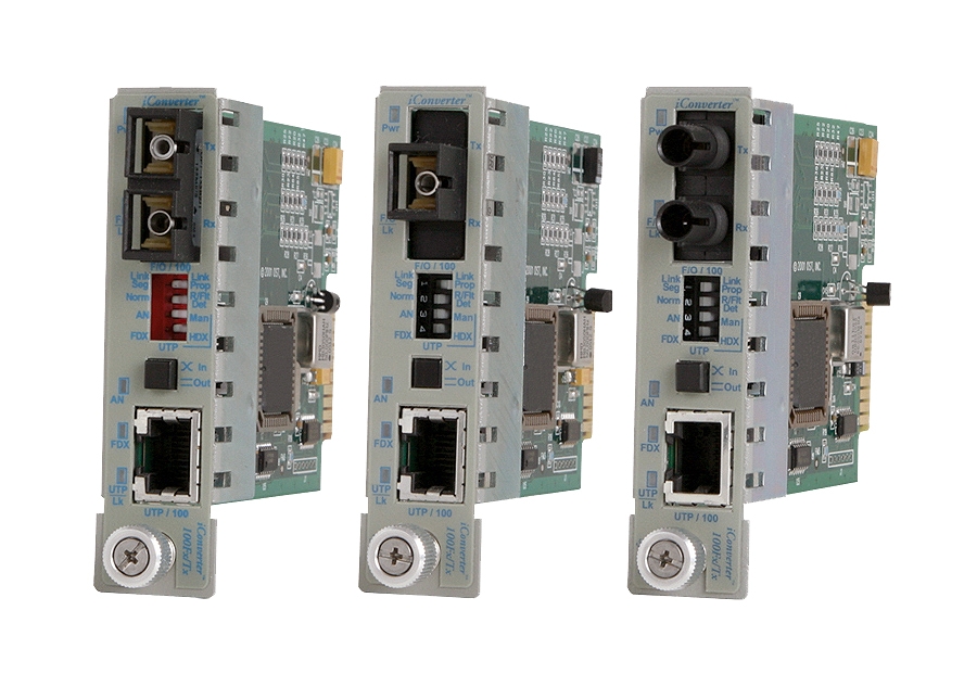 The iConverter 100Fx/Tx managed media converters are members of the modular iConverter product family, and provide 100BASE-TX copper to 100BASE-X fiber conversion.