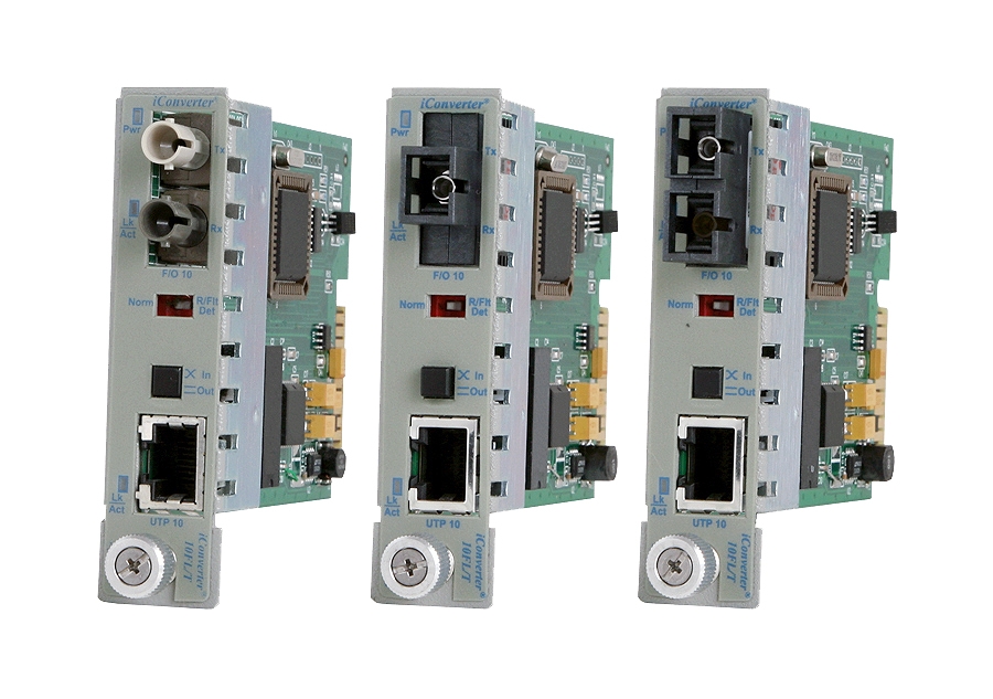 The iConverter 10FL/T managed media converters are members of the modular iConverter product family, and provide 10BASE-T copper to 10BASE-FL fiber conversion.