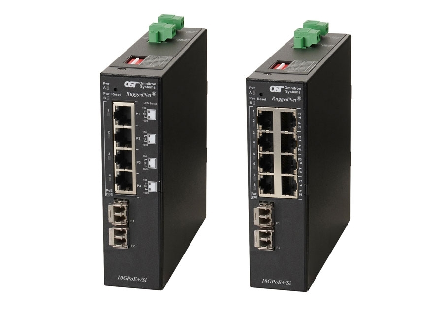 The RuggedNet 10GPoE+/Si is a ruggedized unmanaged PoE and PoE+ industrial Ethernet switch that features two 1/10G uplink ports and four or eight 10/100/1000 RJ-45 Power Sourcing Power-over-Ethernet ports.