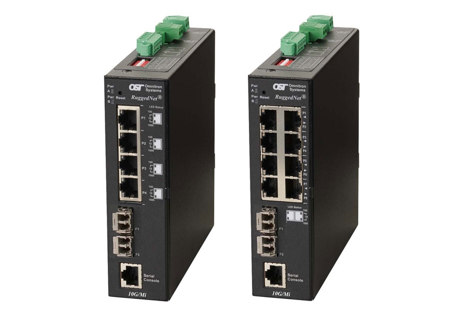 The RuggedNet 10G/Mi is a ruggedized industrial managed 10G Ethernet switch that features two 1/10G uplink ports and four or eight 10/100/1000 RJ-45 user ports. The RuggedNet 10G/Mi enables industrial network distance extension with fiber or copper cabling.