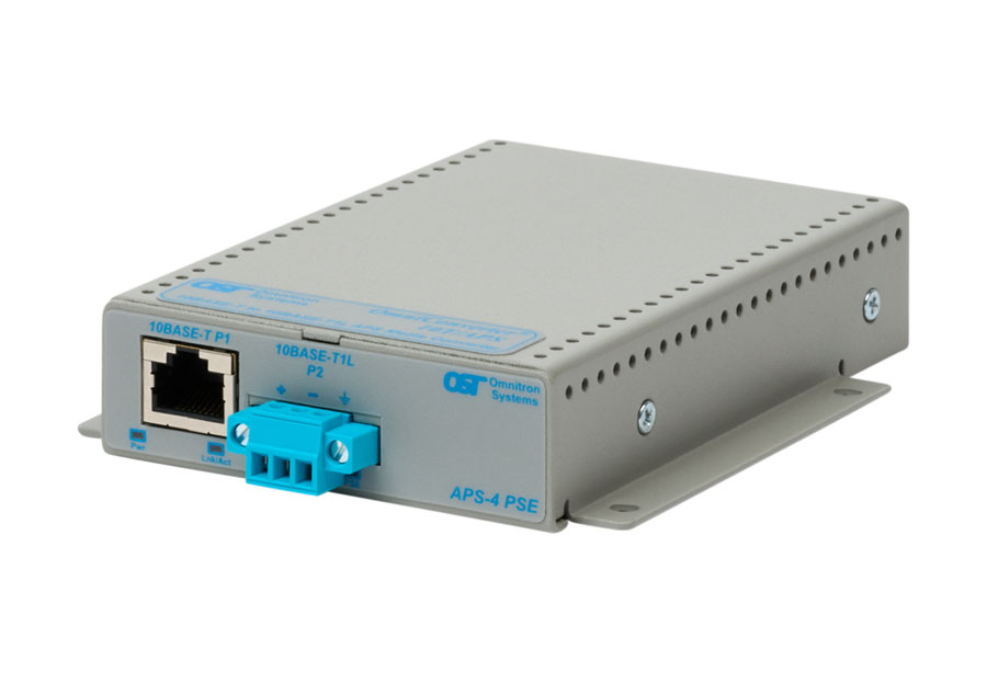 The OmniConverter 10T/APS Single Pair Ethernet converters are 10BASE-T1L products that convert 10BASE-T Ethernet to 10BASE-T1L Ethernet. They are designed for digital instrumentation solutions used for industrial control processes. They utilize single-pair Ethernet cabling (SPE) to extend the Ethernet link distance up to 200 or 1000 meters depending on the model number.